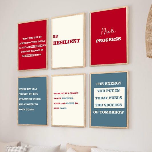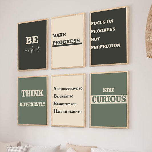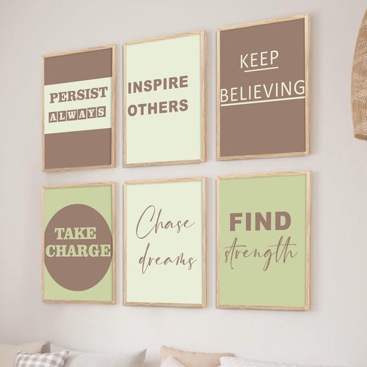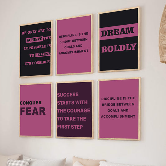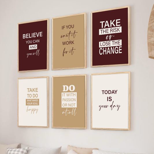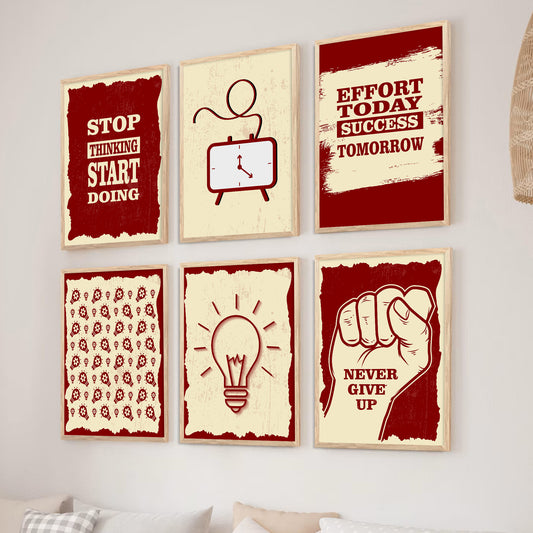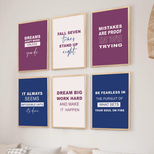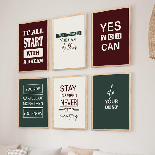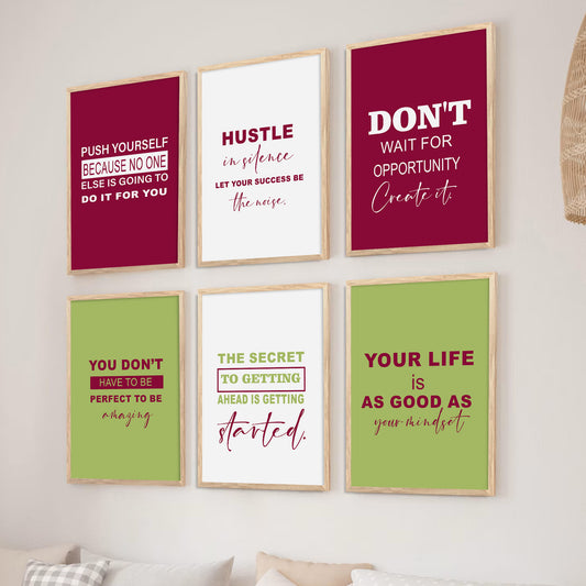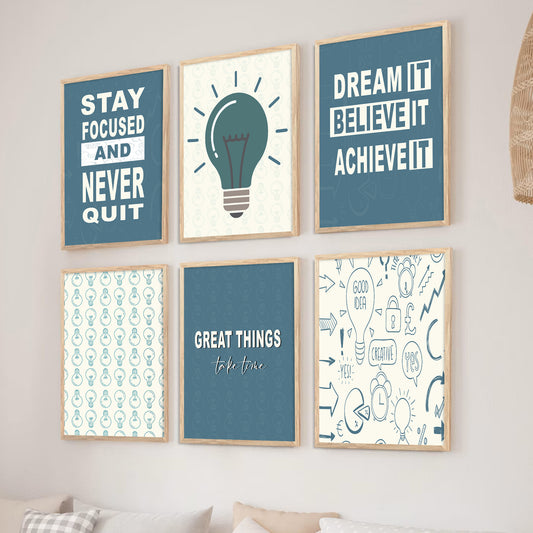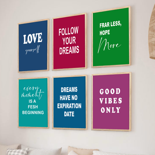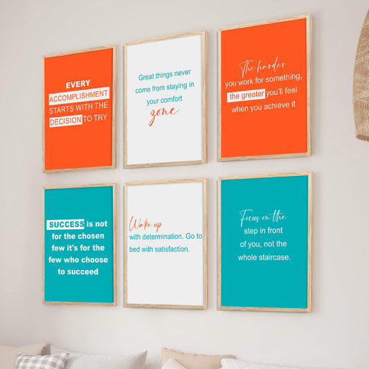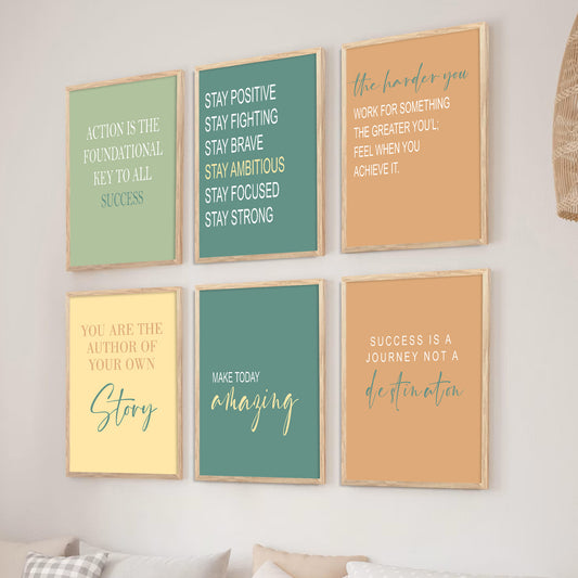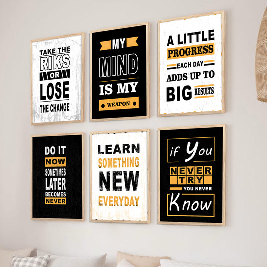• Motivational Quotes Vibrant Colors Posters with Frame for Office Living Room Bedroom Study Room School Wall Decor Set of 6