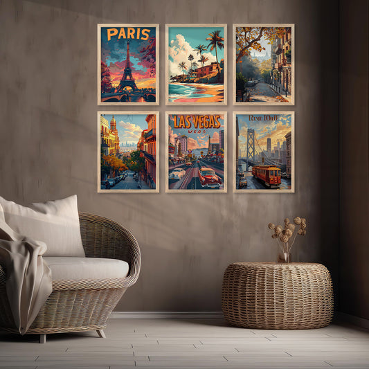 City Wall Art Paintings with Frame for Wall Decor