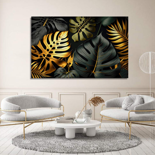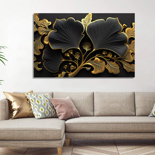 Black And Golden Leaf Canvas Painting for Wall Decor