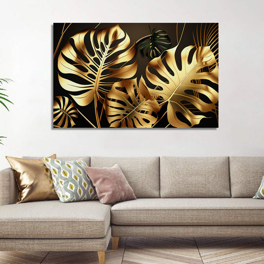 Luxury Golden Leaf Canvas Painting for Wall Decor