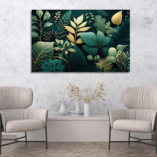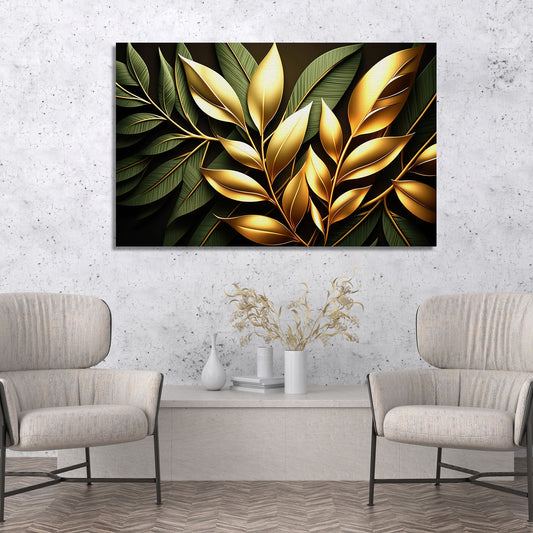 Luxury Green And Golden Leaf Canvas Painting for Wall Decor