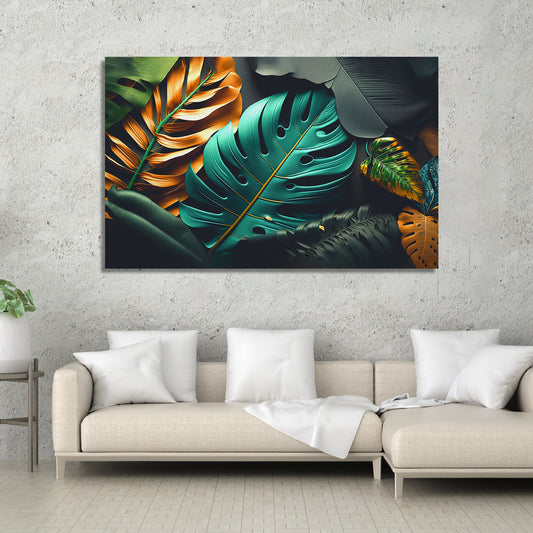 Abstract Canvas Paintings for Stylish Living Room Decor - Nature Inspired Leaf Canvas Painting