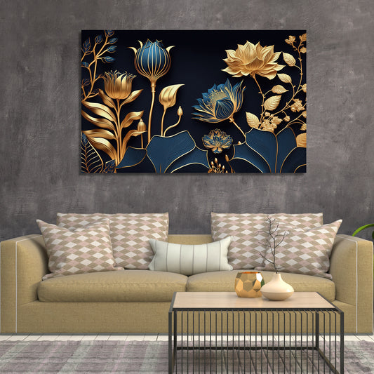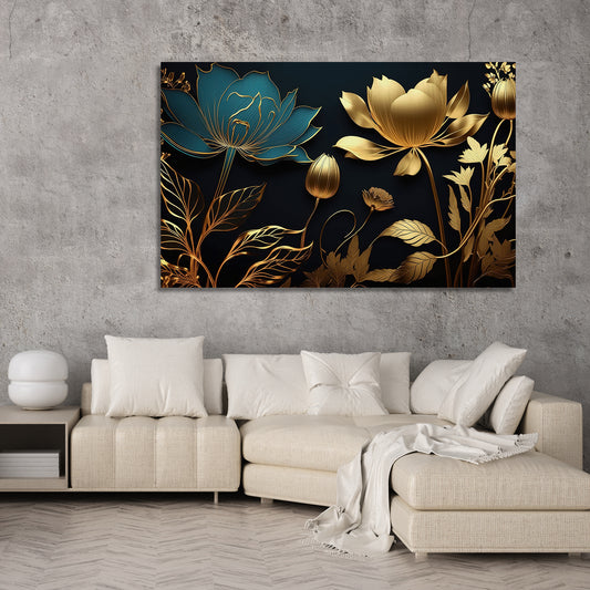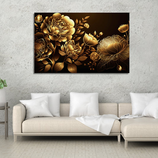 Luxury Golden Flower Canvas Painting for Living Room Bedroom Home Wall Decor
