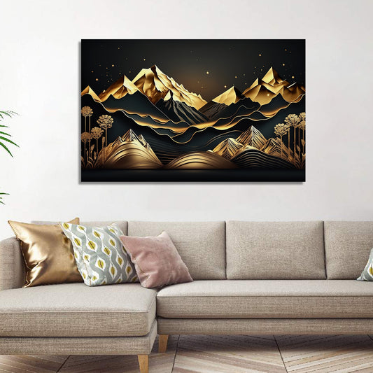 Luxury Black and Golden Mountain Canvas Painting for Living Room Bedroom Home Wall Decor