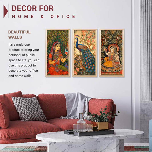 Traditional Indian Madhubani Art Prints with Frame for Wall Decor