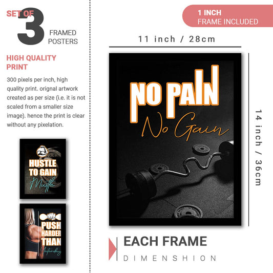 Gym Motivational Wall Frames Posters Paintings For office study Room Home Decoration ( set of 3 )