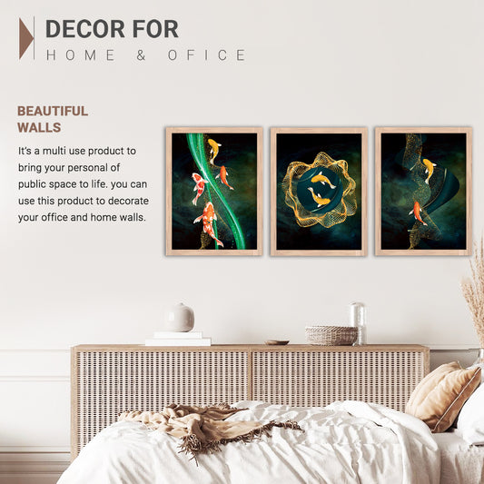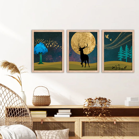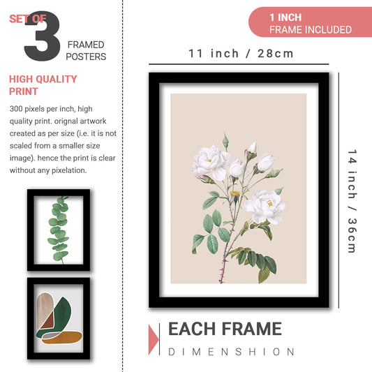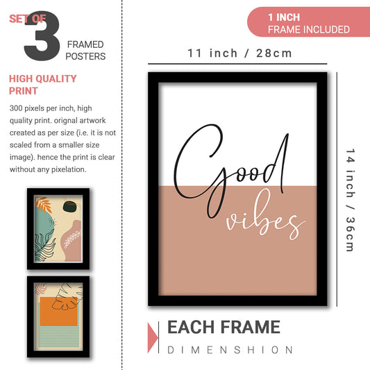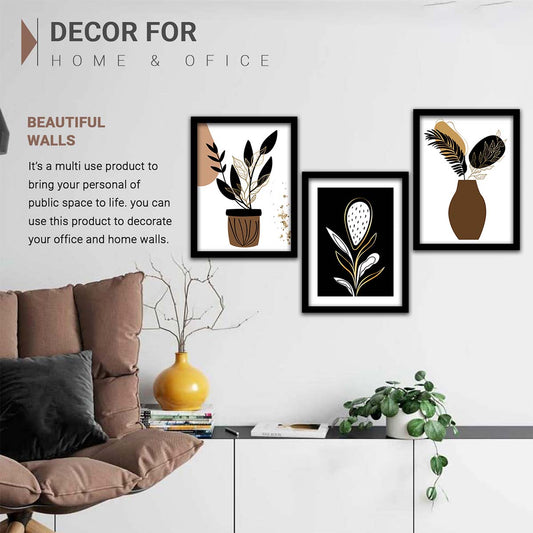 Wall Decor Modern Art Framed Wall Painting Poster for Living room Bedroom Office Gifts Home Decoration Frame In Beige (Set of 3) 11x14 Inches