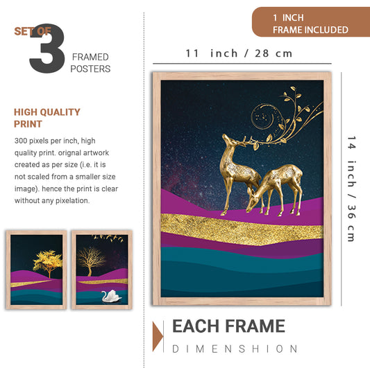 • Wall Decor Modern Art Framed Wall Painting Poster for Living room Bedroom Office Gifts Home Decoration Frame In Beige (Set of 3) 11x14 Inches