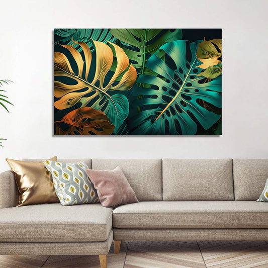 Luxury Green And Golden Leaf Canvas Painting for Wall Decor