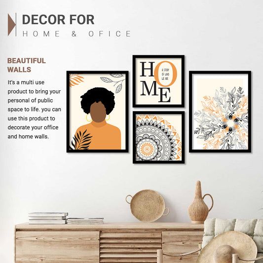 Wall Decor Framed Paintings For Living Room Bedroom - Framed Posters For Girls (Set of 4) 11x14 Inches (Pattern 4)