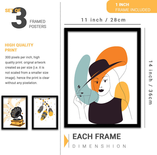 Wall Decor Framed Paintings For Living Room Bedroom - Framed Posters For Girls (Set of 4) 11x14 Inches (Pattern 3)