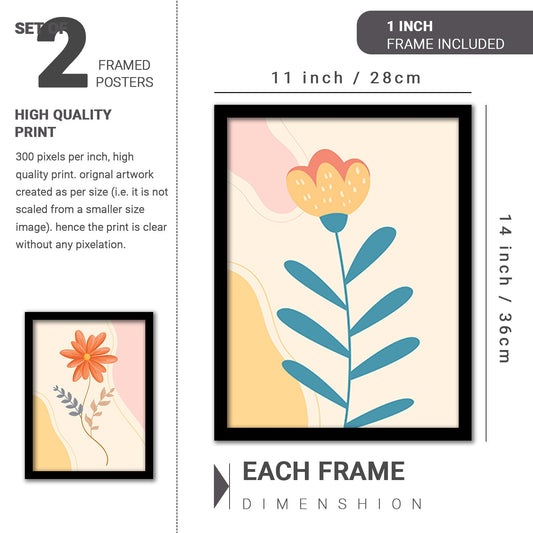 Wall Decor Framed Paintings For Living Room Bedroom - Framed Posters For Girls (Set of 4) 11x14 Inches (Pattern 2)