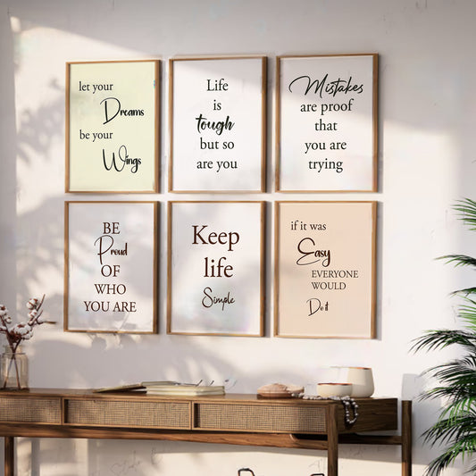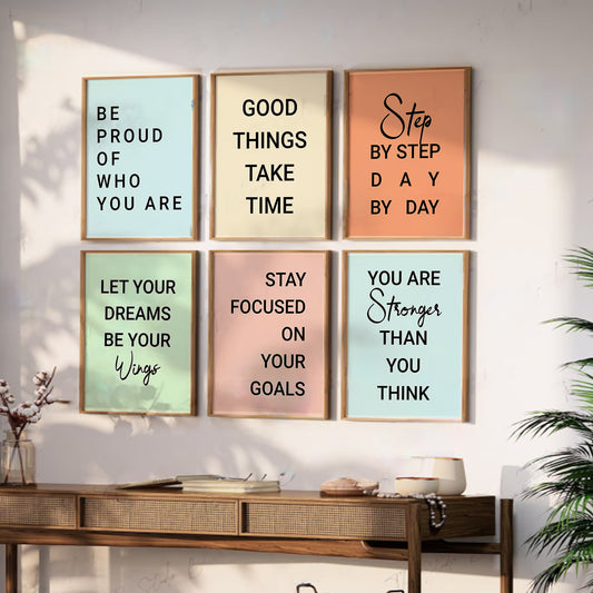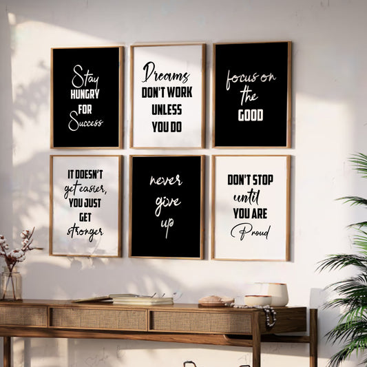 Motivational Quotes Framed Posters for Home Living Room Bedroom and Office Wall Decor Set of 6