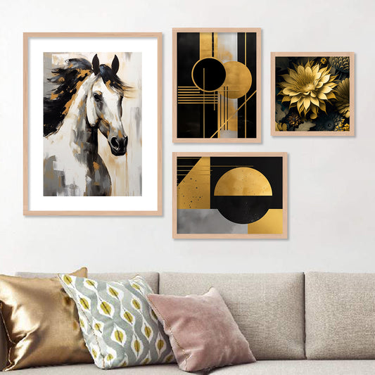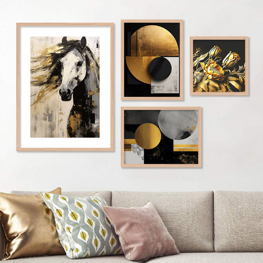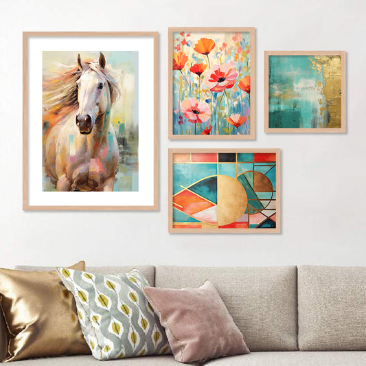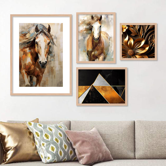Horse Art Painting with Frame for Living Room Bedroom Office Wall Decor