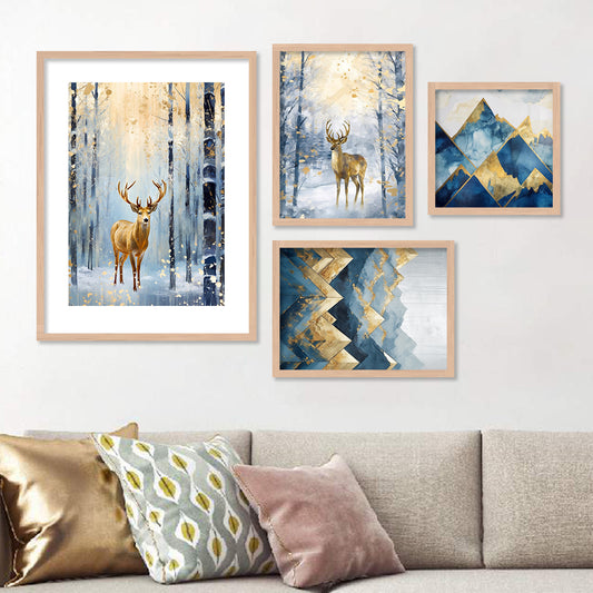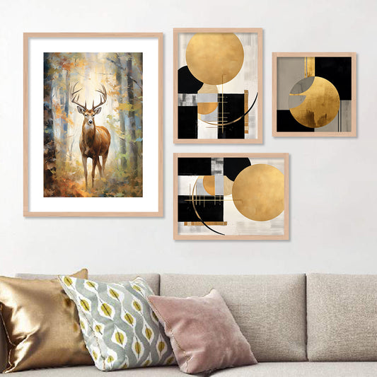 Deer Art Painting with Frame for Living Room Bedroom Office Wall Decor