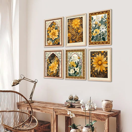 Floral Inspired Elegant Wall Decor Paintings with Frame for Home Living Room Bedroom and Office Wall Decor Set of 6
