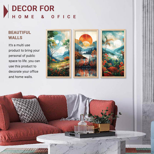 Vibrant Nature Inspired Art Posters with Frame for Home and Office Wall Decor