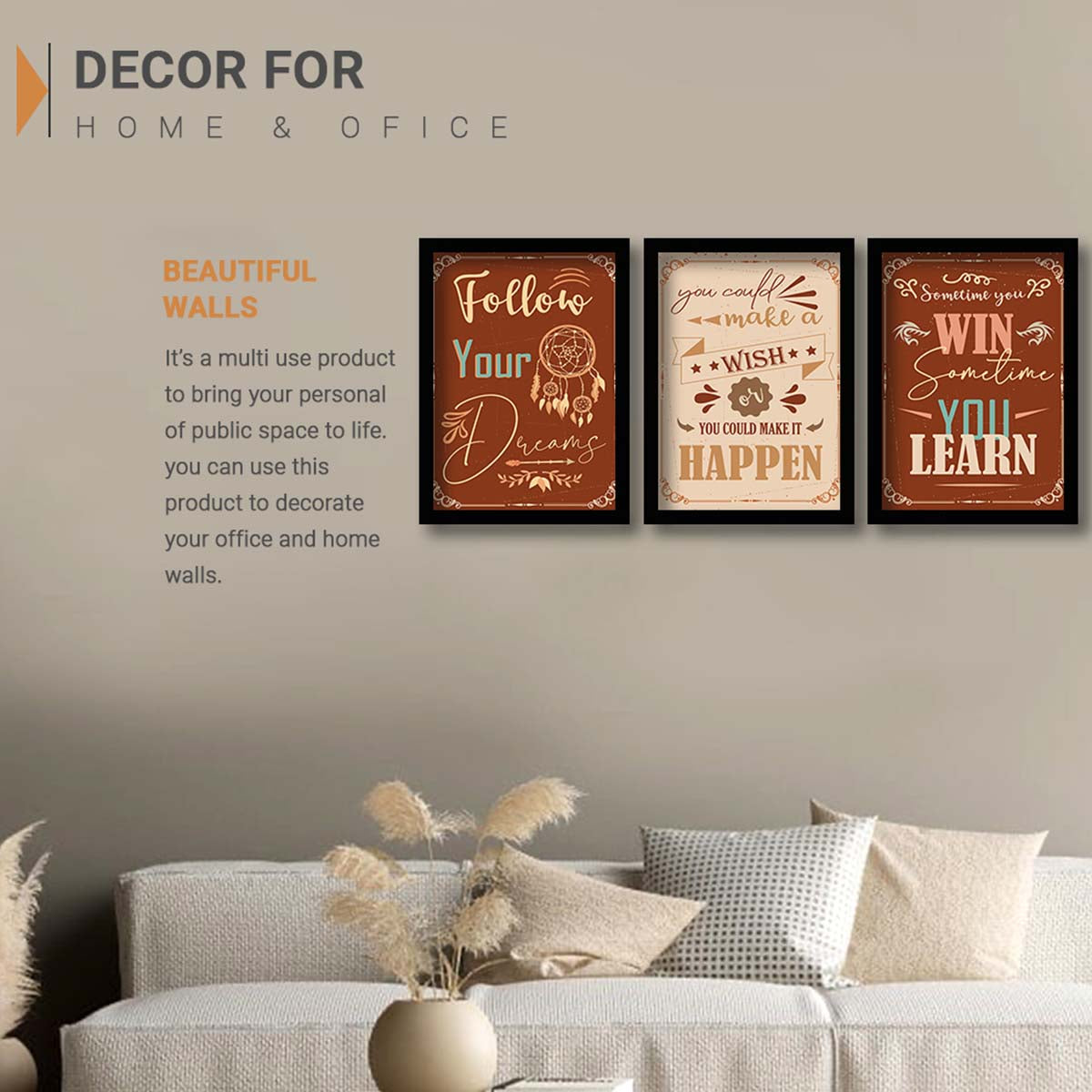 Motivational Wall Frames Posters Paintings For office study Room Home Decoration ( set of 3 )